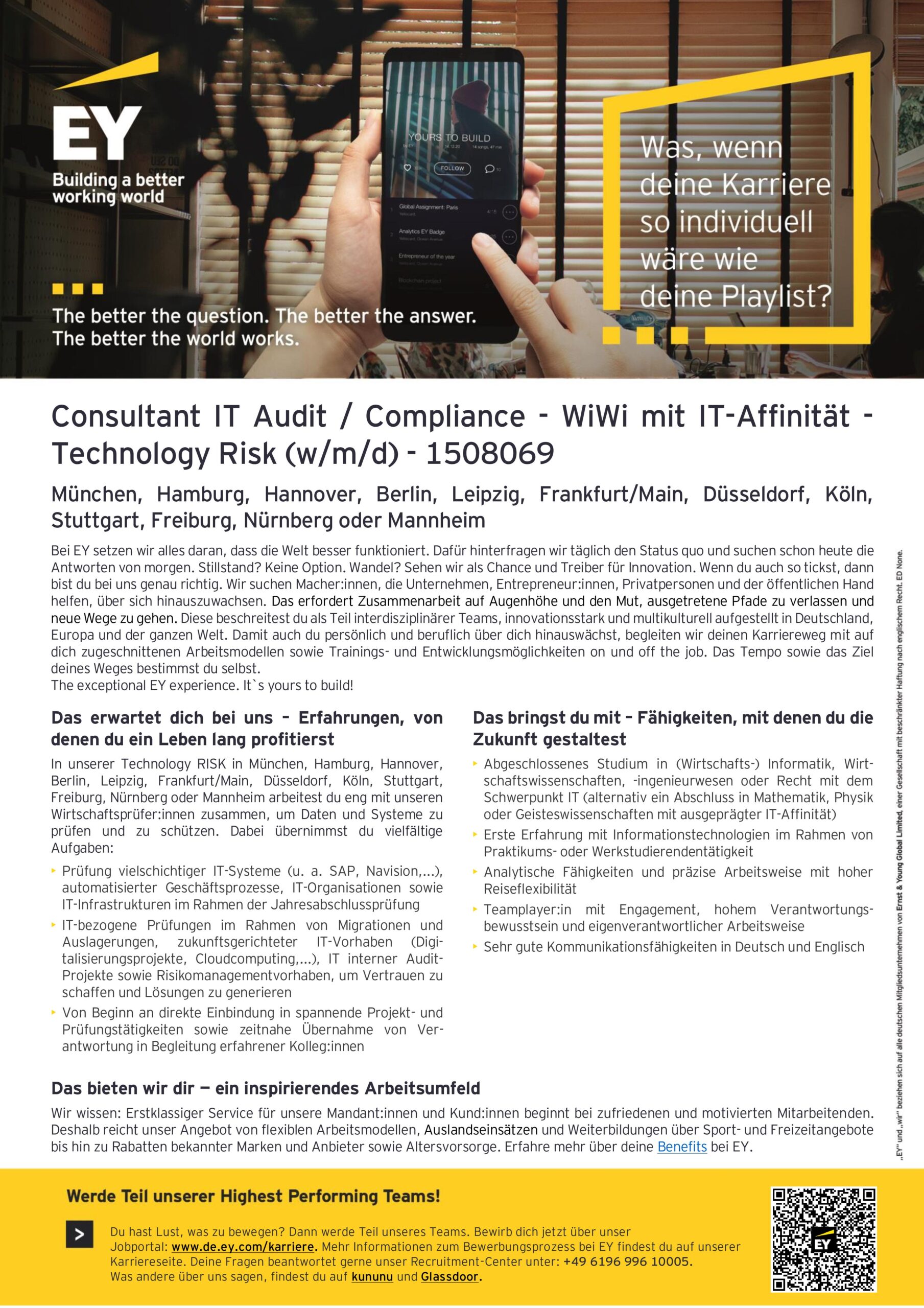 Die globale EY-Organisation ist ein marktführendes Unternehmen in den Bereichen Wirtschaftsprüfung, Steuer- und Rechtsberatung sowie in den Bereichen Strategy and Transactions und Consulting. Mit unserer Erfahrung, unserem Wissen und unseren Leistungen stärken wir weltweit das Vertrauen in die Wirtschaft und die Finanzmärkte. Dafür sind wir bestens gerüstet: mit hervorragend ausgebildeten Mitarbeitenden, starken und vielfältigen Teams, exzellenten Leistungen und einem sprichwörtlichen Kundenservice. Unser Ziel ist es, Dinge voranzubringen und entscheidend besser zu machen – für unsere Mitarbeitenden, unsere Mandant:innen und die Gesellschaft, in der wir leben.
