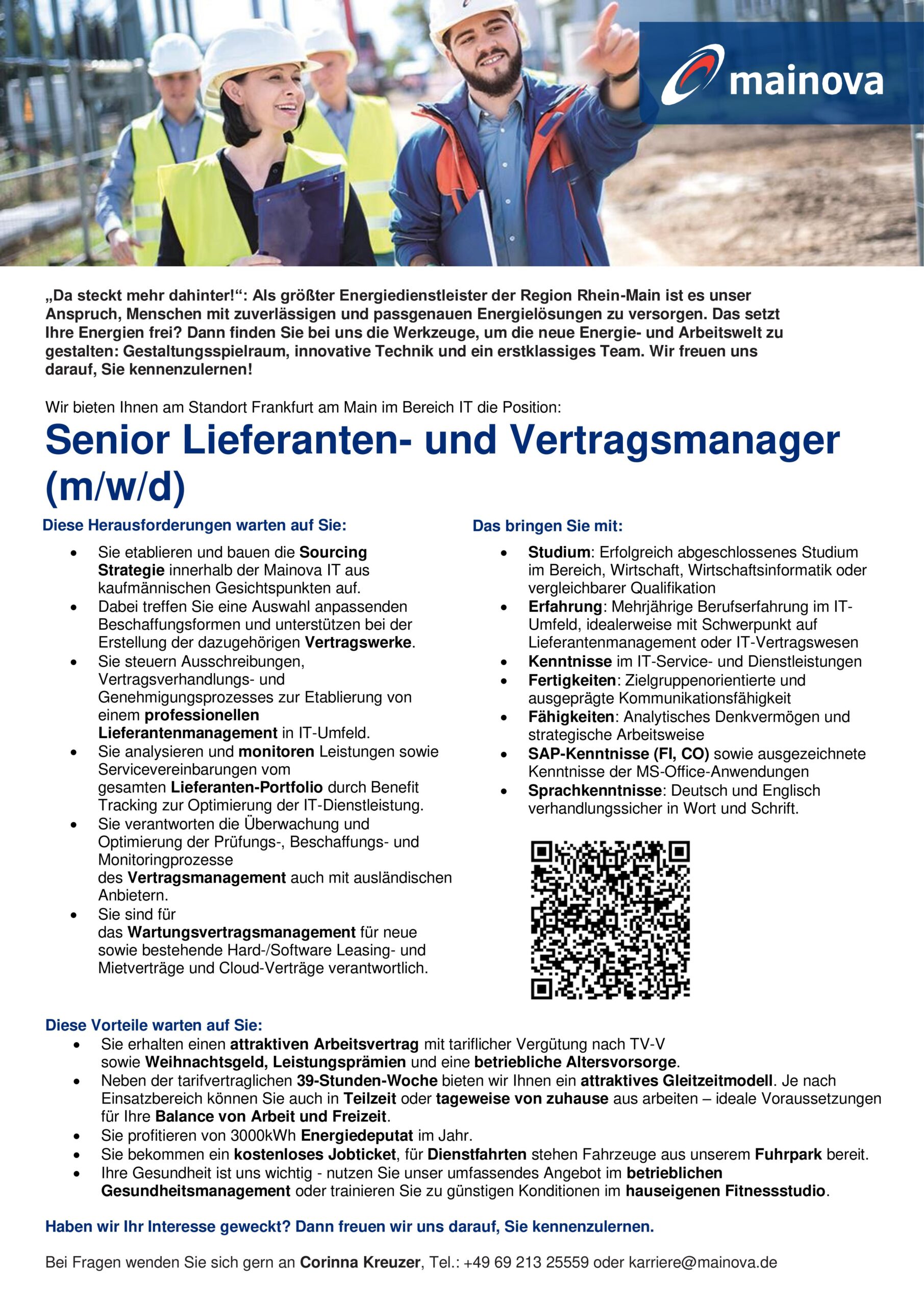 Die Energiewelt von morgen gemeinsam gestalten. Mit innovativen Projekten wie virtuellen Kraftwerken, der Speicherung von Ökostrom und intelligenten Netzen stellt sich Mainova den Herausforderungen der Energiewende. Um dieser verantwortungsvollen Aufgabe gerecht zu werden, brauchen wir energiegeladene Mitarbeiterinnen und Mitarbeiter. Ob Auszubildende oder Studierende, Absolventinnen und Absolventen, Berufserfahrene oder Führungskräfte: In Ihrem Job schenken wir Ihnen Vertrauen und Verantwortung – und alle Möglichkeiten, berufliche Ziele eigenverantwortlich und flexibel anzusteuern. Werfen Sie einen Blick hinter die Kulissen des Unternehmens und lernen Sie uns als Arbeitgeber kennen. Hier finden Sie den Job, der zu Ihnen passt!